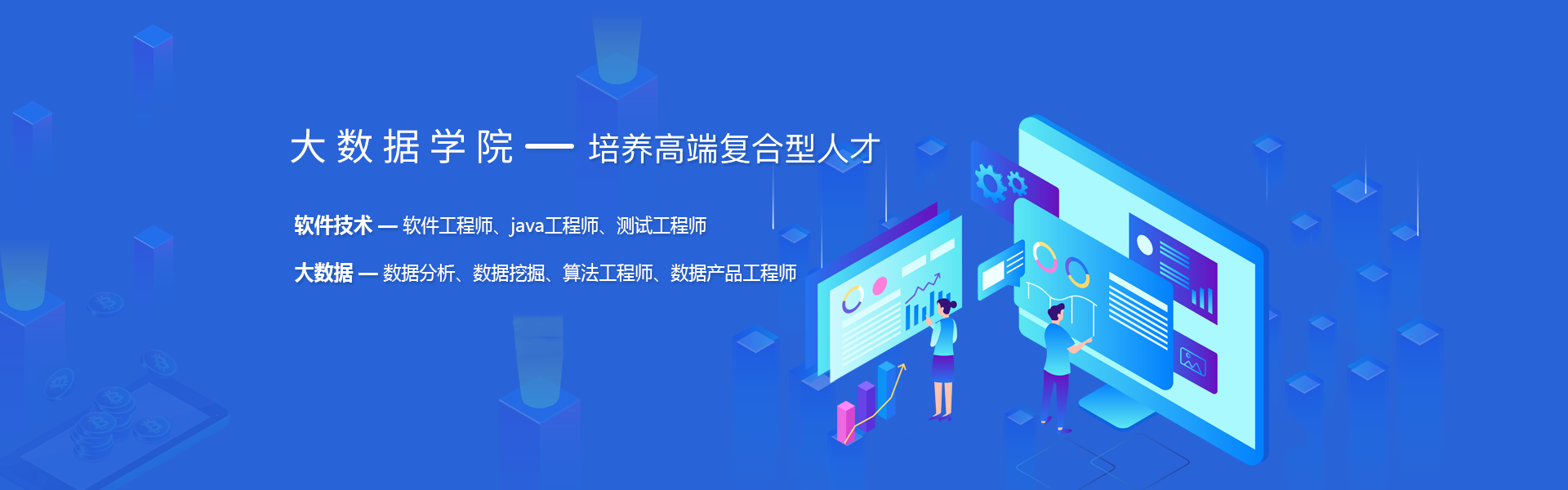在进思,大数据学院希望培养的是软件技术+大数据技术高端复合型工程师!